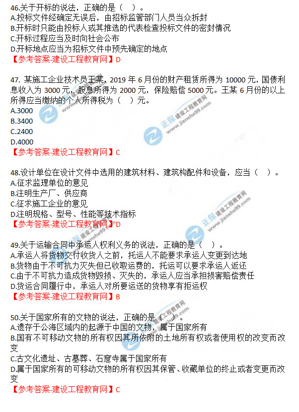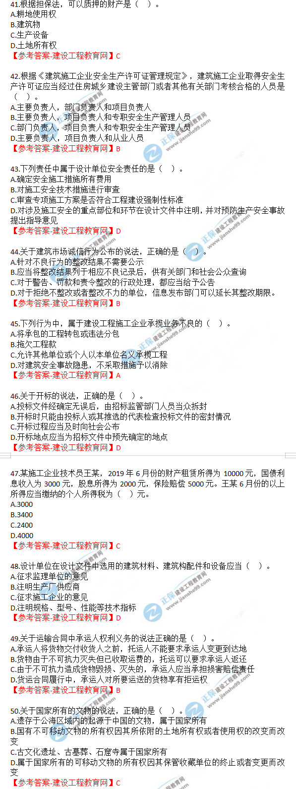 2019年一级建造师《建设工程法规及相关知识》试题答案及解析41-50