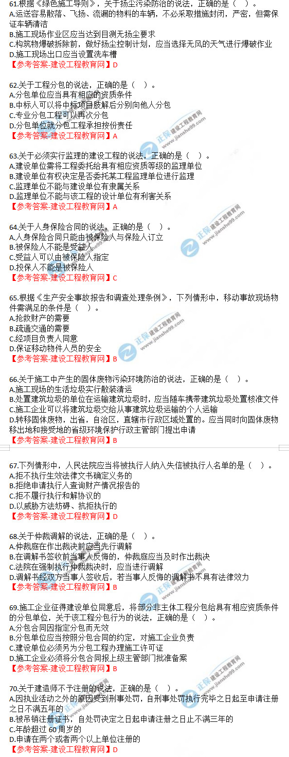 2019年一级建造师《建设工程法规及相关知识》试题答案及解析61-70