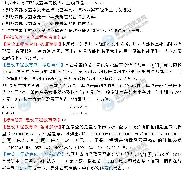 2014一级建造师工程经济答案及解析由老师整理而成,部分网站未经许可擅自转载、抄袭,造成内容有所缺失或错误,请大家以建设工程教育网发布为准!