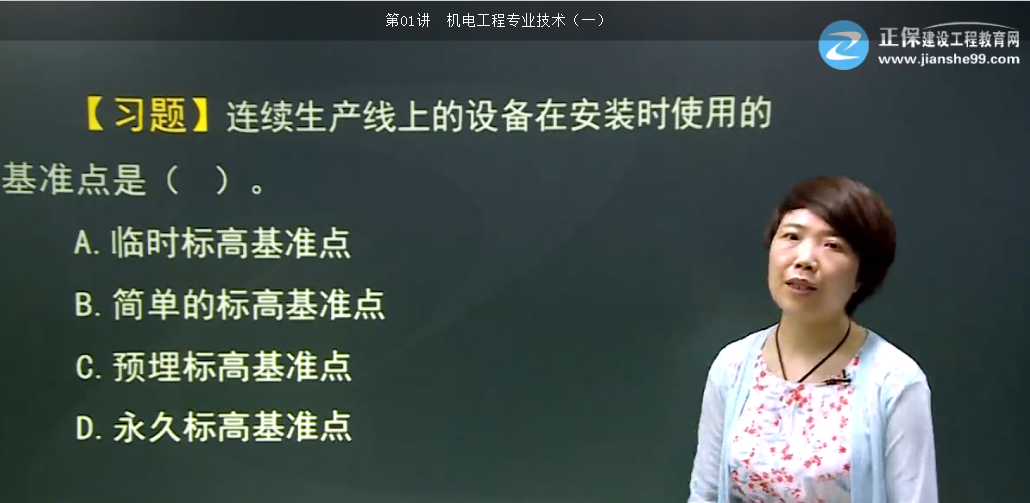 【答案解析】本题考查的是机电工程中常见的工程测量。简单的标高基准点一般作为独立设备安装的基准点;预埋标高基准点主要用于连续生产线上的设备在安装时使用。