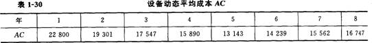 2.某设备物质寿命为8年,各年的动态年平均成本AC见表1-30,则其经济寿命为()年。