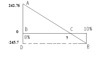 三角形ABC相似于三角形ADE(242.76)/(242.76+245.7)=(?-8%)/(10%-8%)