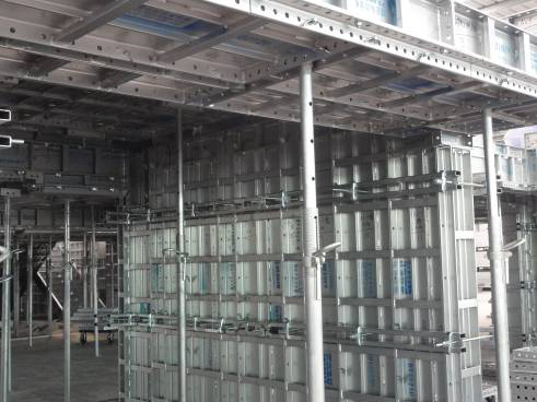铝合金模板适用于墙、柱、梁、板等混凝土结构支模施工、竖向结构外墙爬模与内墙及梁板支模同步施工,目前在国内住宅标准层得到广泛推广和应用。