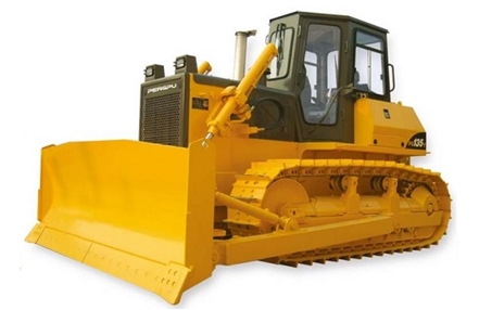 推土机是以拖拉机为原动机械,另加切土刀片的推土器组成的机械;用以清除土地、道路构筑物或类似的工作的大型机械。它适用于50~100米短距离土或软土的挖运作业,根据行走装置的不同分为: