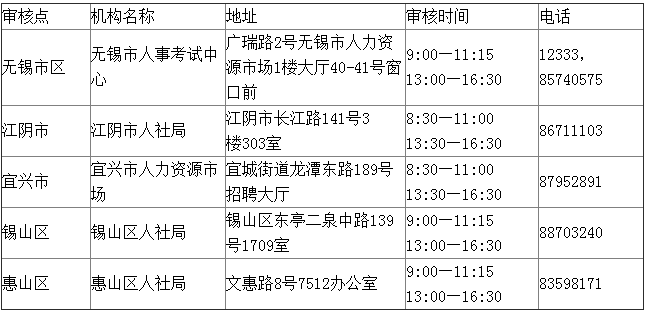 (4)个人社会保险缴费记录(至少1年以上,市区参保人员可用身份证在社保中心的自助机上按历年打印“个人社会保险历年缴费情况”)(详见本文件第五大条报考条件中关于社会保险缴费记录)。市区参保的请选择市区或锡山、惠山审核点,江阴、宜兴参保的请选择对应审核点;