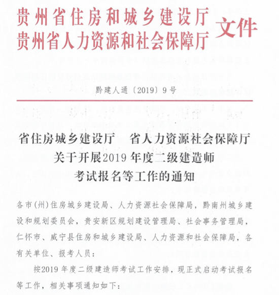 点击查看考务文件:贵州关于开展2019年度二级建造师考试报名等工作的通知