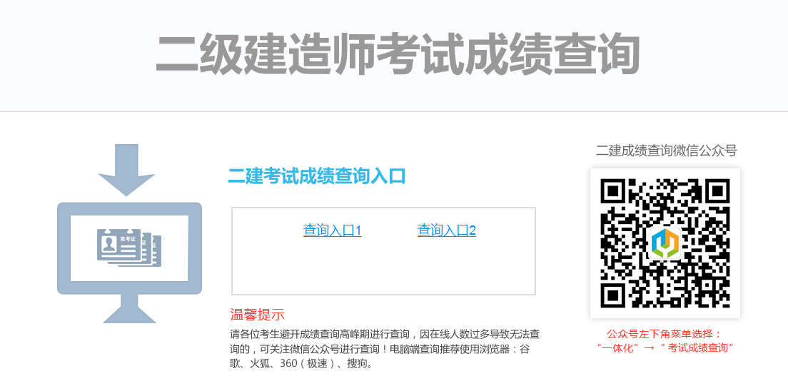 云南二建成绩入口:为两个查询入口,填写查询条件即可查询。另有微信公众号可查询云南二建成绩