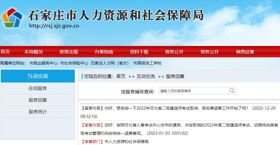 【留言内容】你好,想咨询一下2022年河北省二级建造师考试取消,报名费退费工作开始了吗?(2022-12-29 08:32:16)