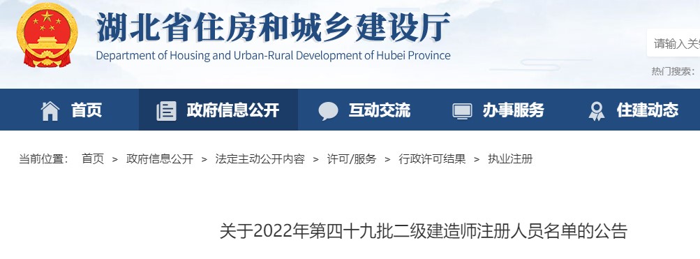 湖北关于2022年第四十九批二级建造师注册人员名单的公告