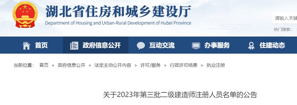 湖北省关于2023年第三批二级建造师注册人员名单的公告