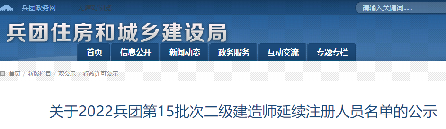 关于2022兵团第15批次二级建造师延续注册人员名单的公示