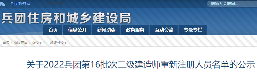 关于2022兵团第16批次二级建造师重新注册人员名单的公示