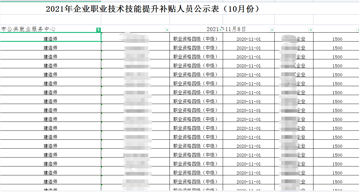 建造师官方补贴来啦,身为建工人的你还没有备考二级建造师?是可忍自己都不能忍,这补贴还能让他跑了?济南市公共就业服务中心发布2021年度企业职工技术技能提升补贴人员公示表(10月份)