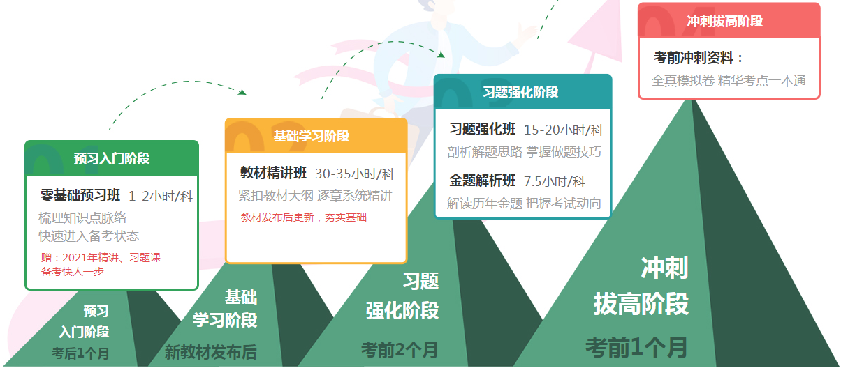 其次课程包含了预习阶段、基础阶段、强化阶段、习题训练这4各部分,是一个全程的正式备考课程。只要大家有一定的基础加上一定的时间这个课程对于大家备考来说绝对没有问题。