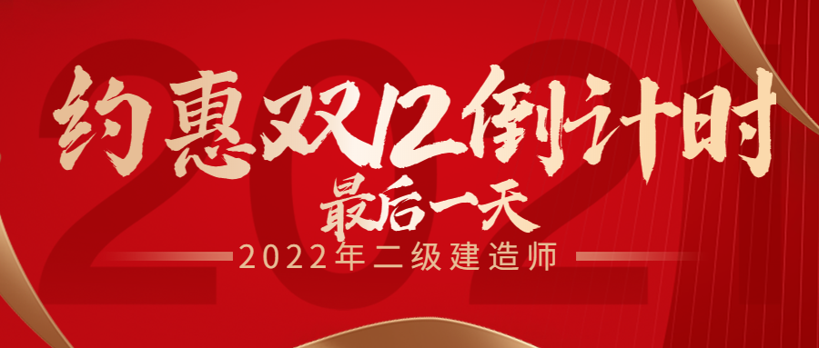 2022年二级建造师双12全面起航,折扣优惠力度高涨,今天最后1天限时优惠,15号正式涨价,越限购,越先购,抢占先机。