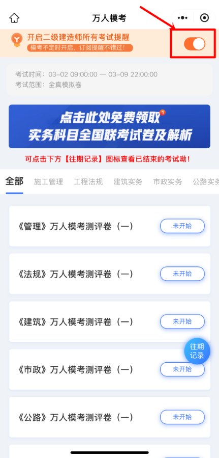 建议开通考试提醒,避免错过二级建造师考试重要时间节点。