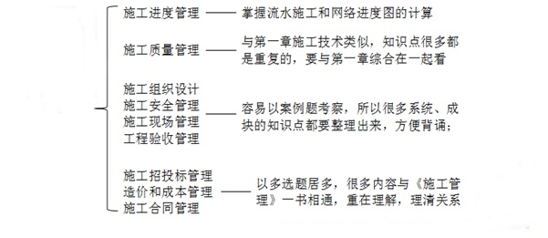 对于施工管理这部分,复习要点如下图。