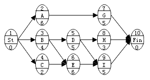 【答案解析】关键线路只有1条B-E-I,计算工期为4+6+5=15天;G工作的总时差=15-11=4天,G工作的自由时差=15-11=4天;D工作最早完成是第9天,I工作最早开始是第10天,有1天的时间间隔;H工作的自由时差=15-(4+5+3)=3天。参见教材P142。