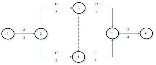 【答案解析】网络计划的计算工期是13天,从右向左取小值。有E的最迟完成时间是13-4=9天,则E的最迟开始时间是9-3=6天。参见教材P134.