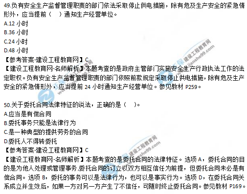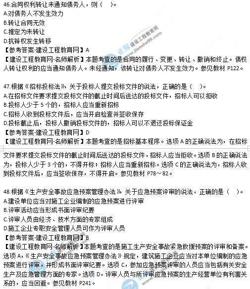 2019年二级建造师试题及答案解析-《法规》46-50题