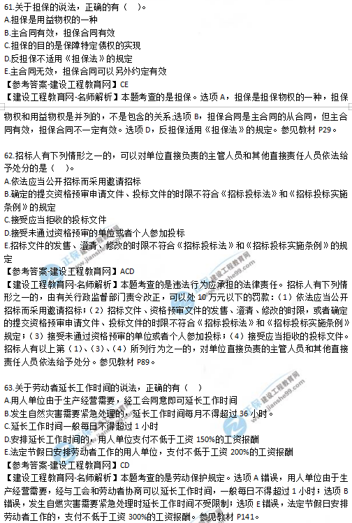 2019年二级建造师法规考试真题及答案解析61-65