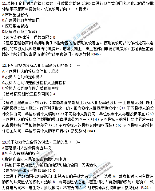2019年二级建造师法规考试真题及答案解析11-15