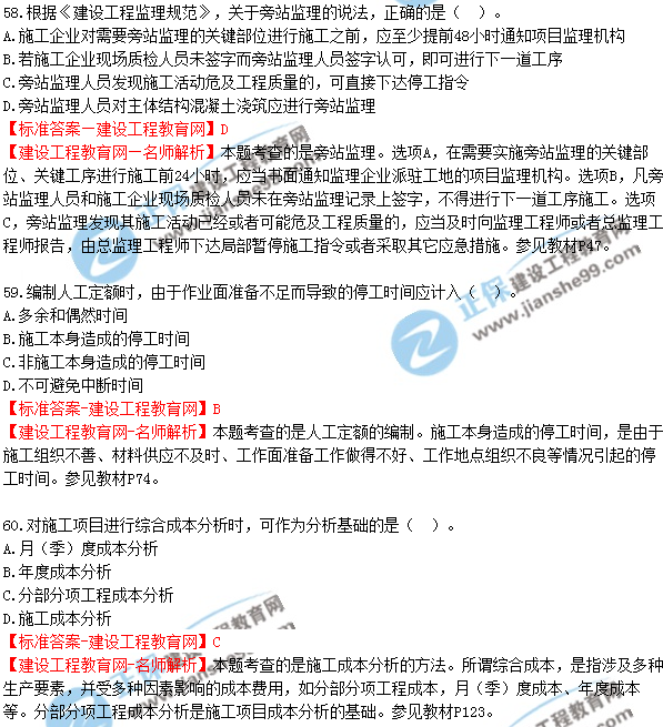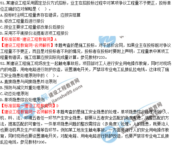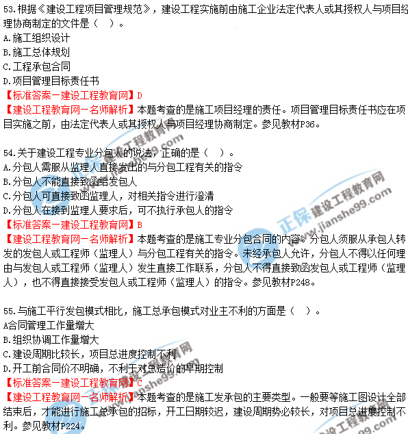 2018年二建《建设工程施工管理》试题及答案解析(51-60)