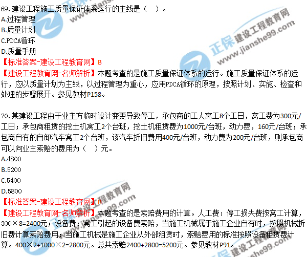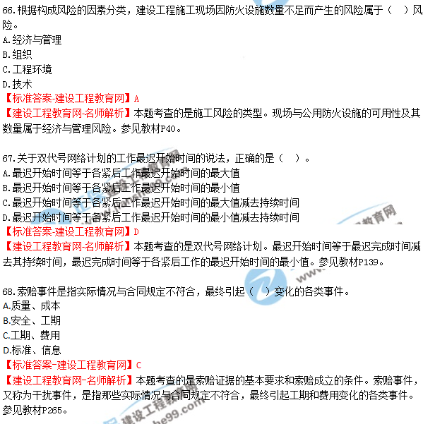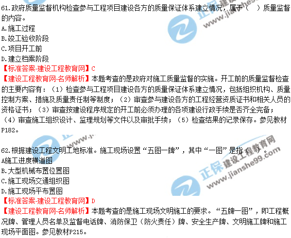 2018年二建《建设工程施工管理》试题及答案解析(61-70)
