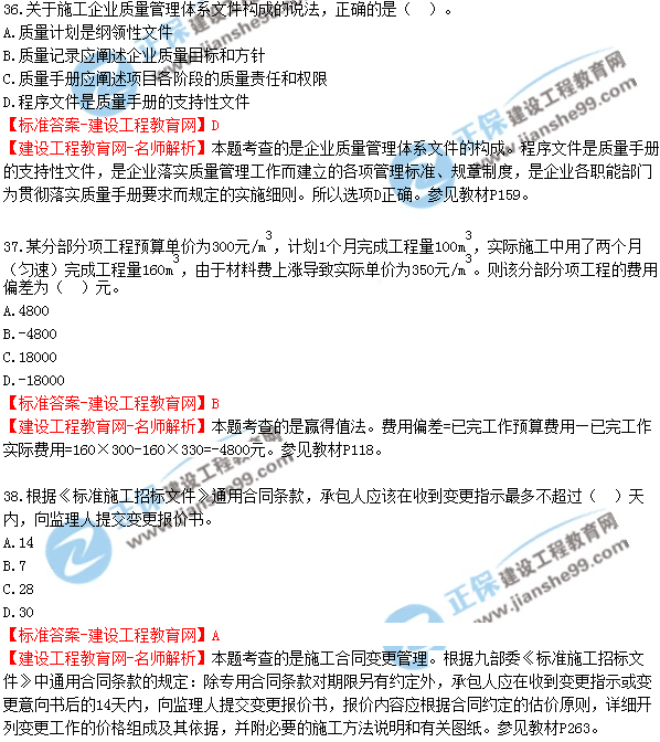 2018年二建《建设工程施工管理》试题及答案解析(31-40)