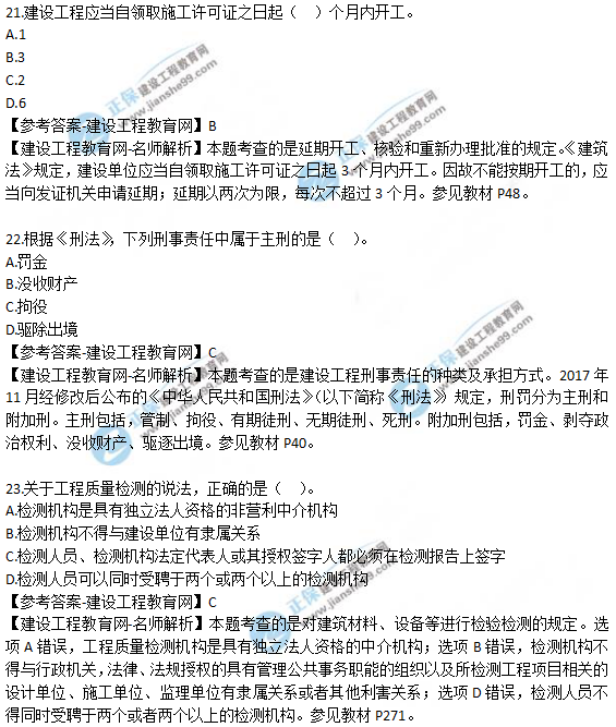 2019年二级建造师《工程法规》试题及答案解析21-30