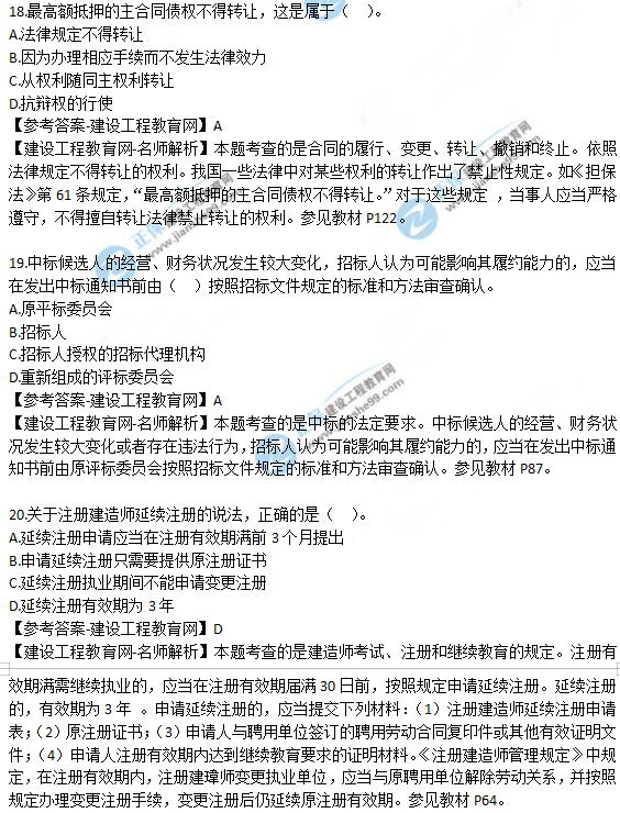 2019年二级建造师《工程法规》试题及答案解析11-20