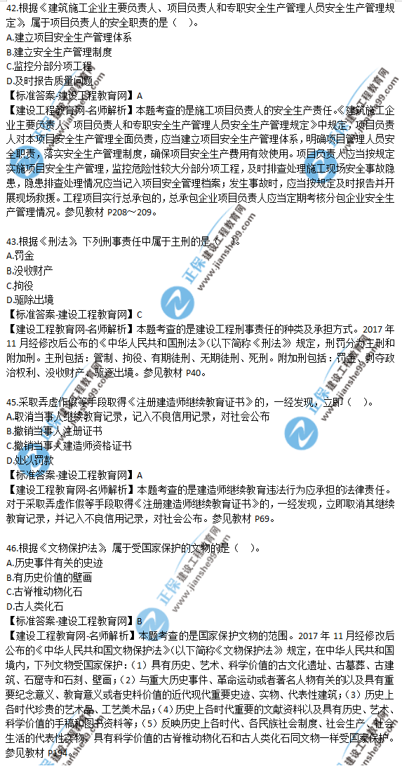 2019年二级建造师《工程法规》试题及答案解析41-50