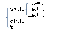 (说明:这里轻型井点的一级、二级、三级是这样来划分:对于开挖深度较大的基坑,分级开挖时,最上面设置的井点是一级井点,第二级设置的是二级井点,以此类推。)