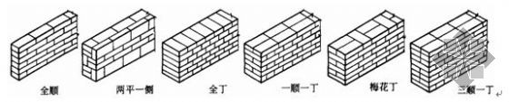 【提问】全顺、两平一顺、全丁、一顺一丁、梅花丁、三顺一丁,各是怎样形式?请老师出图表示。谢谢!