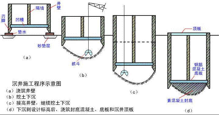【提问】请问老师:沉井湿封底时刃脚宽度10-30公分,那个宽度是指什么地方。刃脚高度是什么地方,还有踏面,最好在图上标注给我看一下,谢谢老师。