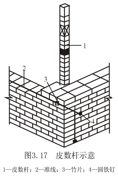 下图是皮数杆的示意图,皮数杆是指在其上划有每皮砖和灰缝厚度,以及门窗洞口、过梁、楼板等高度位置的一种木制标杆。砌筑时用来控制墙体竖向尺寸及各部位构件的竖向标高,并保证灰缝厚度的均匀性。