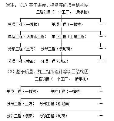 1.一些居住建筑开发项目,可根据建设的时间对项目的结构进行逐层分解,而对一些工业建设项目往往按其生产子系统的构成对项目的结构进行逐层分解。