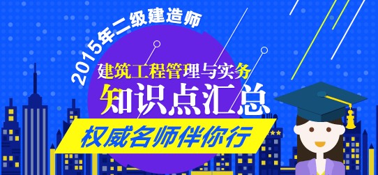 【小编的话】2015年二级建造师考试百天倒计时已经开始,2015年考试教材与2014年相比较,变动不大(点了解详情:建筑工程管理与实务教材变动)。考试时间为5月30、31号,为了广大考生能够系统全面的掌握《建筑工程管理与实务》科目的知识点,小编精心整理了以下内容,希望能够对广大学员有所帮助!