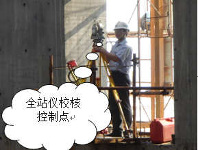 (4)依据同样的方法引测各点,待四个控制点全部向上投测后,进行点位之间的角度和距离的闭合检测,调整闭合差,确定所投点楼层的测量控制网,相对误差精度可达到1/20000以上。