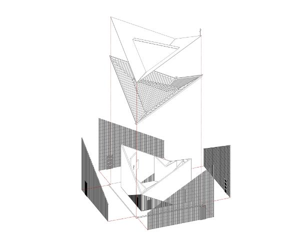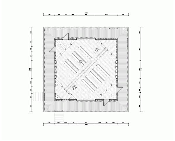 木质的廊道形成了中央大堂的独特双层外壳。内壳更为封闭,自然光线仅能透过屋顶和墙面的洞口进入室内。外壳由精致的SPF板条构成,作为外界视线的过滤层,示意宗教空间体验的开始。这种双层外壳系统营造了一种特别有趣的东方建筑空间,它有别于传统石材教堂的“封闭性”,亦不同于现代建筑的“开放性”。这座小教堂拥有完美的正方形平面布局。即使旋转45度,将内部空间与外部结构相连,这个正方形仍能保持高度整合的对称和向心的特征。隐藏在平面设计中的对角轴线也向着屋顶结构延伸,实现了空间、材料与力量的全面统一。