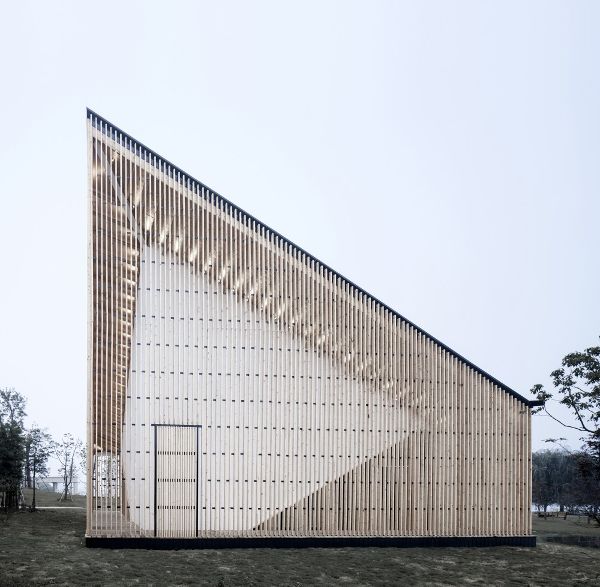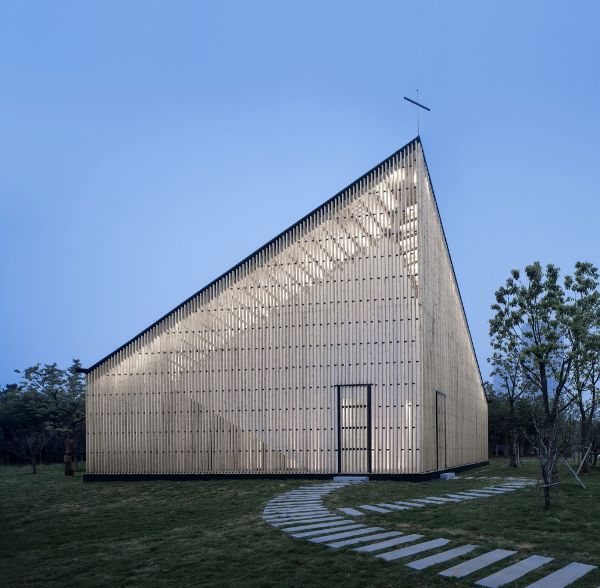本项目是一个200平方米的小教堂,坐落于南京河边的万景园内。教堂由金陵协和神学院的牧师主持,支持各种宗教活动,如做礼拜和婚礼服务。这个木结构与钢结构结合的教堂外形柔和,内在空间因充满了神秘的宗教力量而显得强大。朴素的用材并不耽误展示其精致的建筑逻辑。