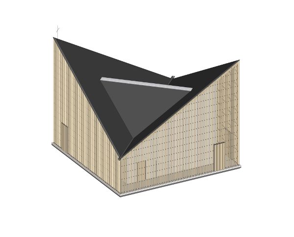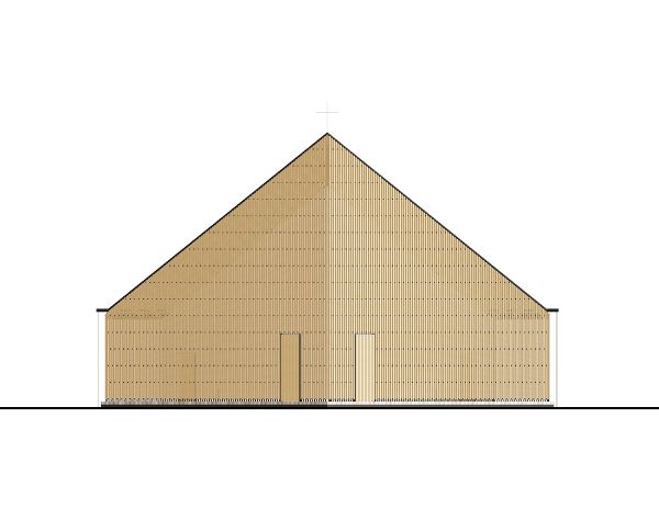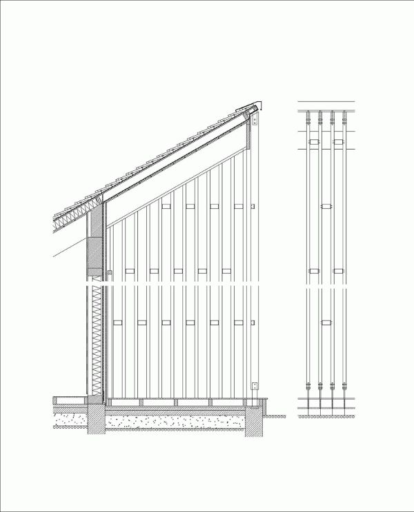 包围着教堂的SPF板条设计得如此精巧,其长度与半径之比可达到1:120,大大超出了正常的承重水平。板条长12米,横截面尺寸为38毫米×89毫米,两端用金属件分别连接在屋顶和地面上,保持着理想的伸展状态。附近的木板条也用U形金属件连接,以确保稳定性。这些元素共同构成了一个金属-木结构,在材料的选择和安装上都极其简单。