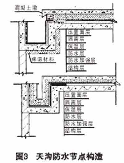 天沟泛水等保温材料无法覆盖的防水部位,应选用耐老化性能好的防水材料,或用多道设防提高防水层耐久性。