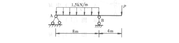 3.外伸梁受力如图所示,为了不使支座A产生垂直反力,集中荷载P的值应为( )kN.