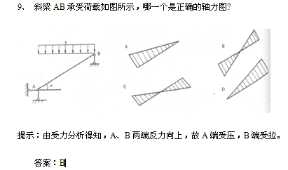 提示:在平衡力系作用下,结构的支反力为零,除AB杆外其余各杆均不受力,仅AB杆受外力作用而产生剪力与弯矩。