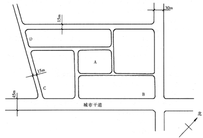 4.某居住小区规划的1.5万㎡商业服务大楼,如下图,应放在下列哪个位置最为合适( )。