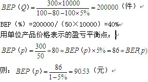 解析:用生产能力利用率表示的盈亏平衡点: