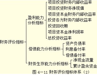 建设工程财务评价按评价内容的不同,还可以分盈利能力分析指标、偿债能力分析指标和财务生存能力分析指标3类。