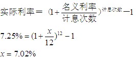 银行为某家庭提供了期限为10年的按月等额还本付息的个人住房抵押贷款、若该笔贷款的实际年利率为7.25%,则名义年利率是( )。