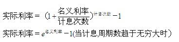 实际利率-指一年内多次计息时,年末终值比年初值的增长率(相当于把多次计息换算出一次计息得出的利息率)